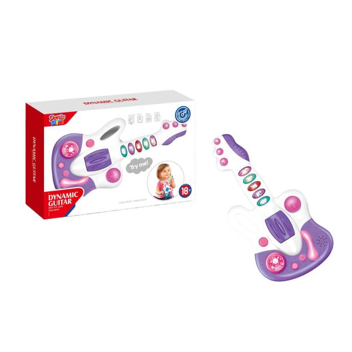 Dinamična gitara s gumbima za prebacivanje na glazbene zapise i šarenim trepćućim gumbima. Svaki gumb je odgovoran za uključivanje različite melodije, zvuka ili čak pjesme, što pomaže vježbanju bebine sposobnosti pamćenja i slušne percepcije. Beba će rado ponavljati glazbu. Jednostavna za korištenje. Pruža beskrajne sate zabave. Savršeno za razvoj dječje mašte i ručne spretnosti.