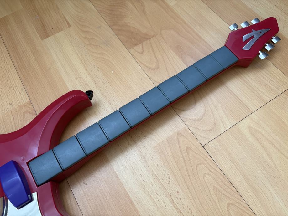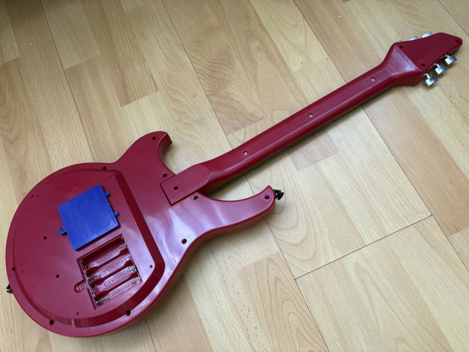 dječja elektronska gitara, duljine 70 cm, radi na 4 AA baterije, odlično stanje, vrlo malo korištena, 10€, moguće slanje (+2€) ili dostava do ZG