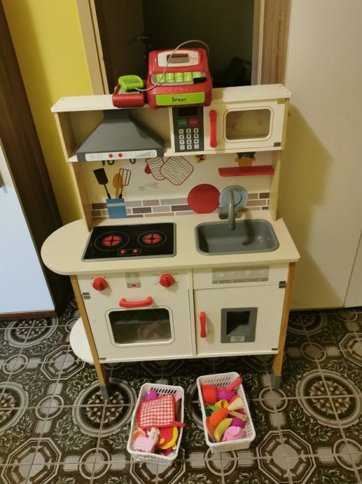 Dječja kuhinja sa zvučnim i svjetlosnim efektima, jako očuvana. Uz kuhinju dolaze i razni dodaci za kuhanje.