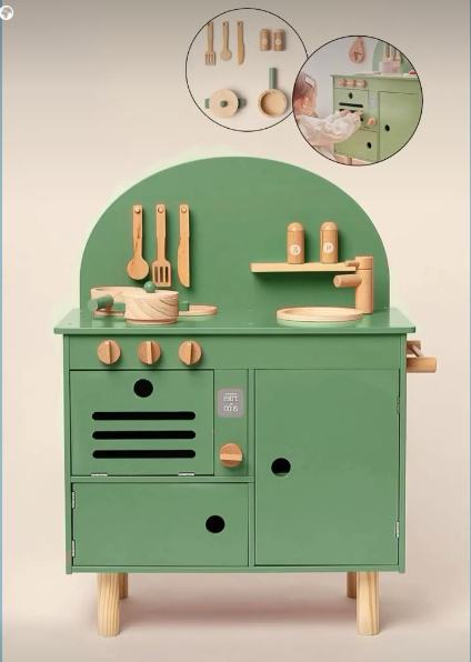 NOVA dječja kuhinja Cuuote, 56x30x78 cm, zelena, sa posuđem; ZG
