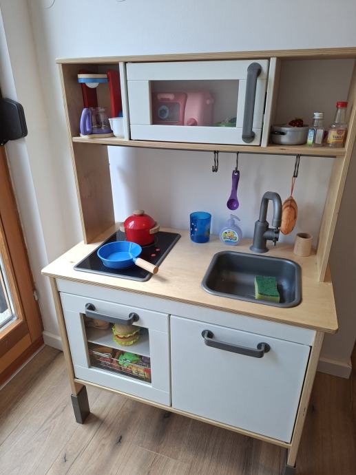 Prodajem dječju kuhinju Ikea, u dobrom stanju, podesiva po visini. Kuhinjski dodaci na poklon.