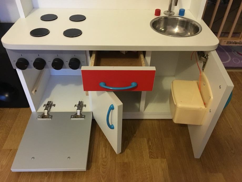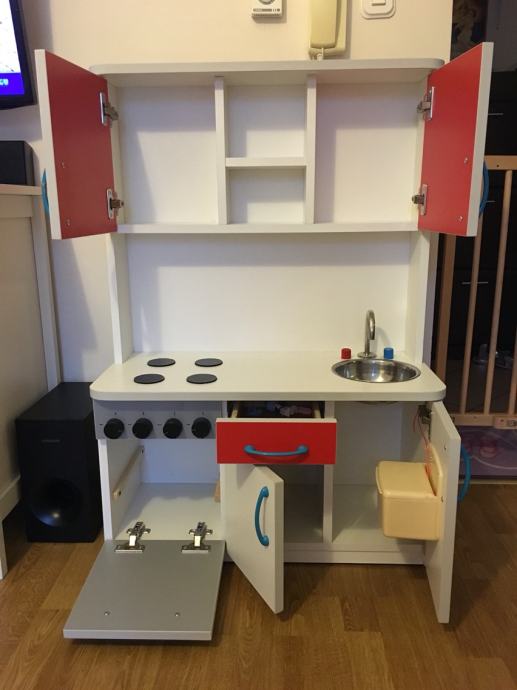 Izuzetno kvalitetno izrađena dječja kuhinja sa pravim šarkama i ostatcima drveta prilikom izrade prave kuhinje. Domaća proizvodnja.