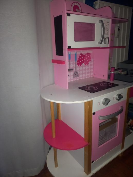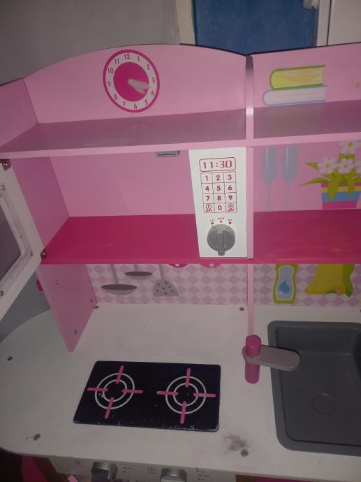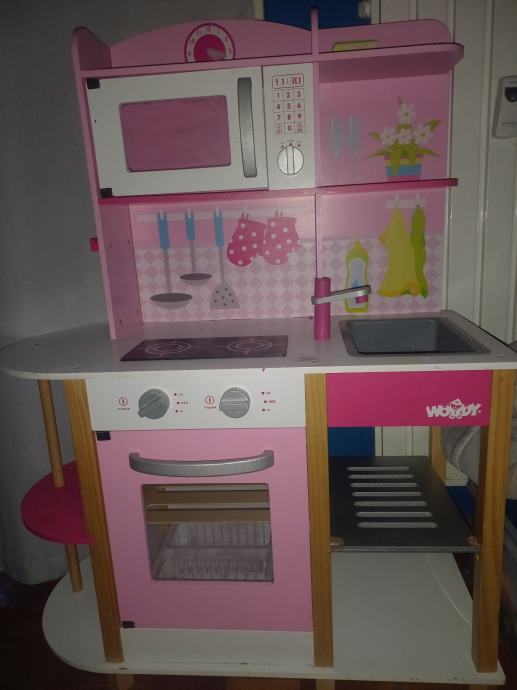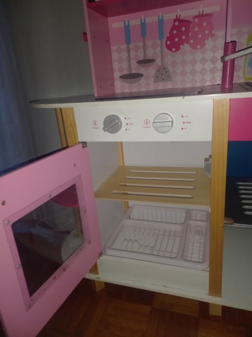 Stvarno divna kvalitetna drvena dječja kuhinja, stara 4 godine, sve je funkcionalno, ormarići rade, tipke za okretanje rade, boja je na nekim mjestima izblijedila, ili ima koja površinska ogrebotina, donja polica drvena siva vidljiva na fotografiji da je treba zalijepiti ili namjestiti, a i može je se ukloniti i tako je lijepo. Potrebno malo boje i kuhinja je kao nova. Visina 105 cm, duljina 77 cm, širina 35 cm. Cijena 20 eura. Lokacija Trešnjevka. Vaš prijevoz.