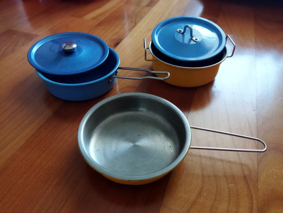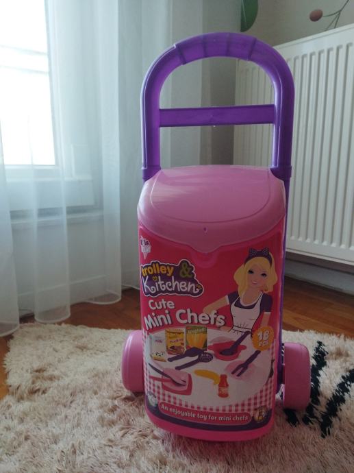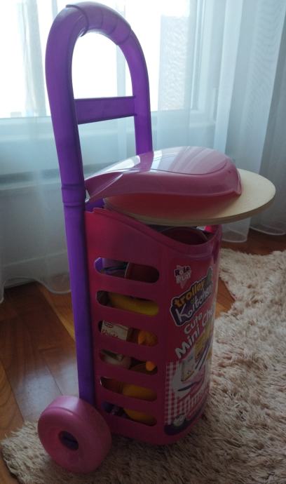 Kompletan pribor za male kuharice i kuhare, zajedno sa kolicima za pohranu i prijenos.