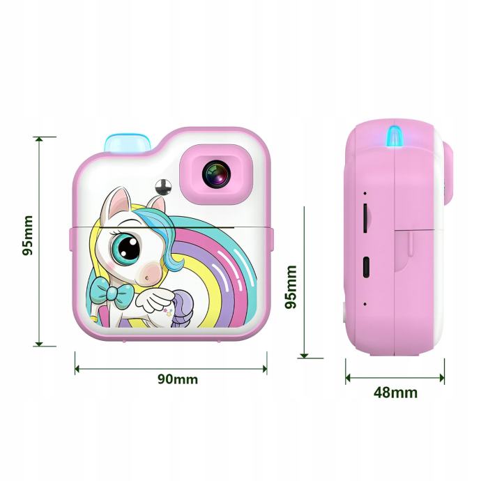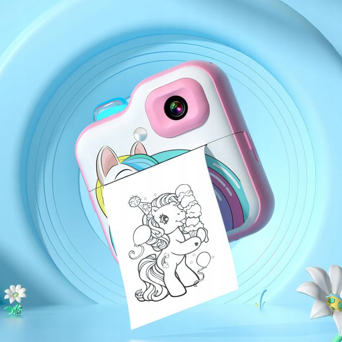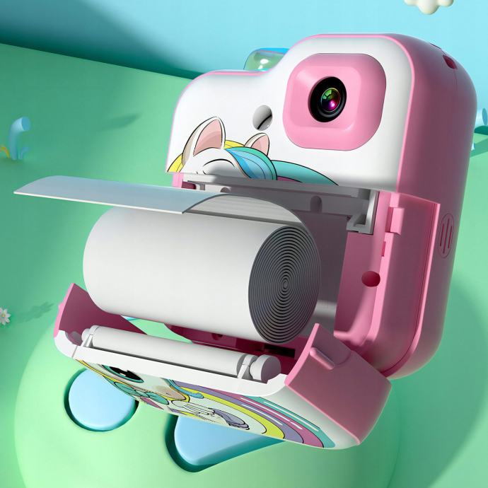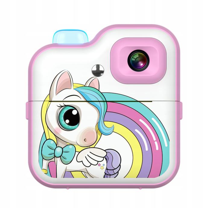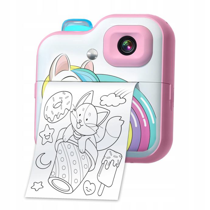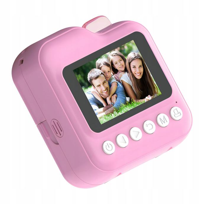 Kamera ima veliki i jasan 2-inčni LCD zaslon koji olakšava provjeru slika prije ispisa. Integrirani pisač bez tinte omogućuje vam brzo ispis crno-bijelih fotografija koje djeca mogu slikati na njihov zahtjev. Zahvaljujući svom laganom i ergonomskom dizajnu u ljupkoj ružičastoj boji, savršen je za male ruke i laganu upotrebu. Robusna i sigurna konstrukcija osigurava da je uređaj pogodan i za mlađu djecu.