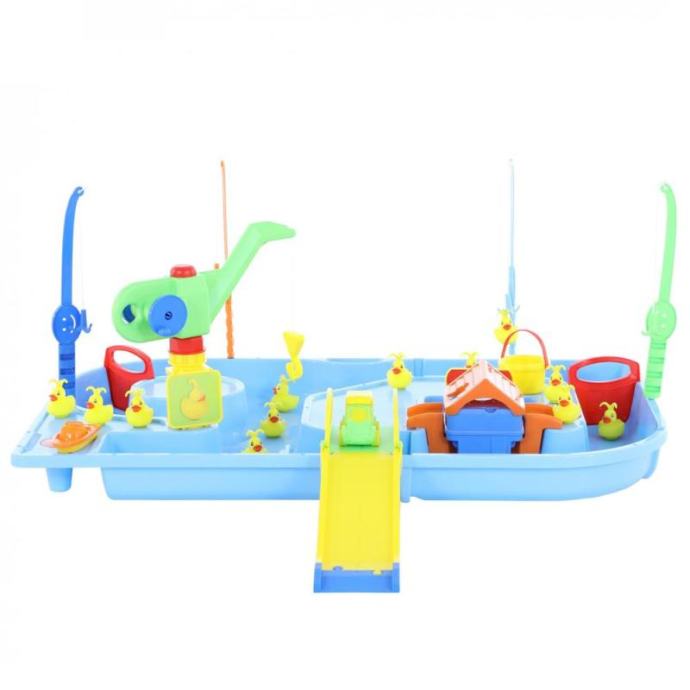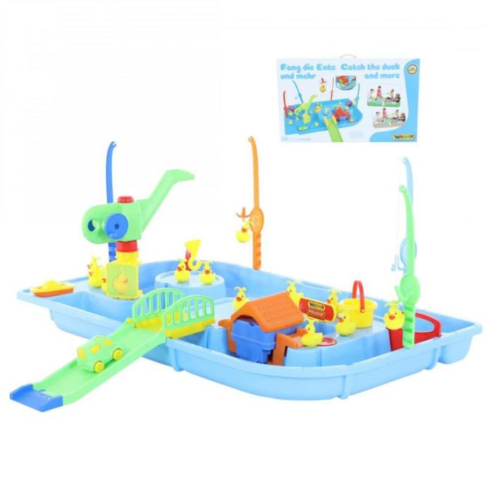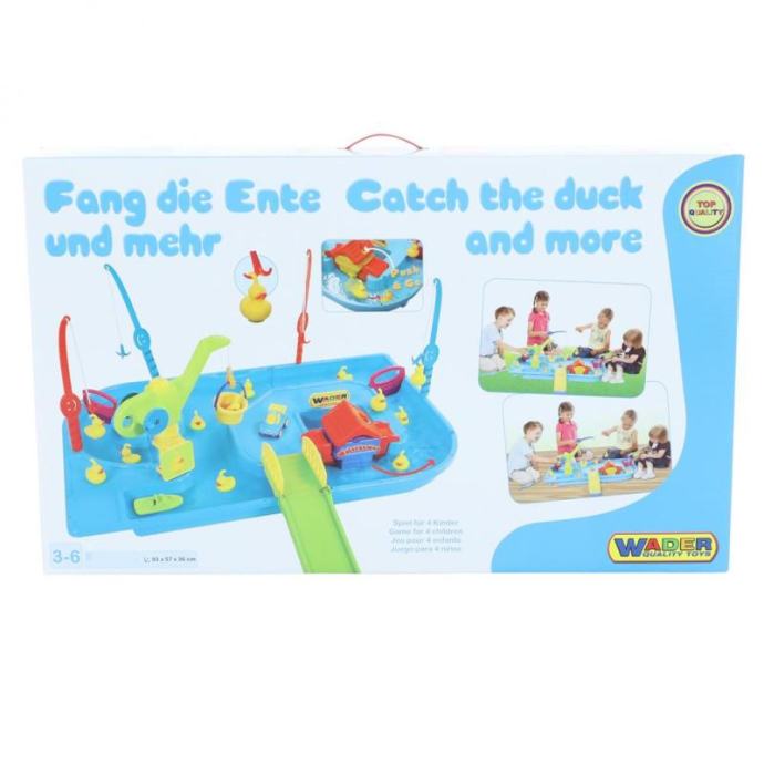 Zabavna ribolovna igra Catch the Duck by Wader donosi popularnu dječju igru u vaš dom. Bilo u vrtu ili na balkonu, igra će vašu djecu dobro raspoloženi kada je u pitanju vješto i koordinirano pecanje pataka koje plivaju iz bazena. Različite mogućnosti igranja i opsežna ponuda dodataka pozivaju vas na uživanje u raznim zabavnim igrama i zasigurno neće dopustiti da se malim ribičima dosađuje. Mala kućica opremljena je motorom na baterije koji osigurava laganu struju pritiskom na gumb. Ovim setom za igranje u vodi može se igrati 4 djece u isto vrijeme.