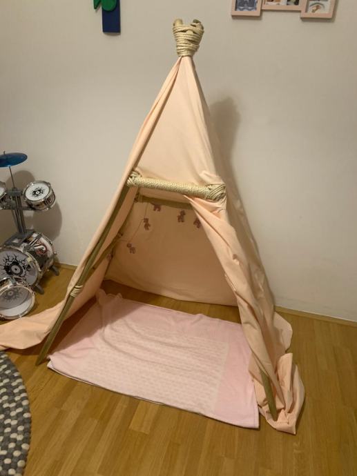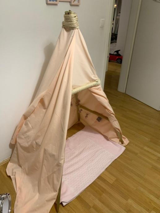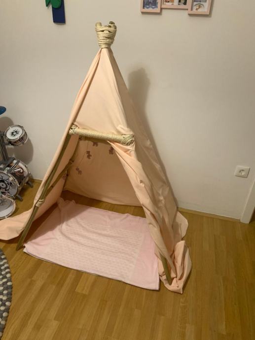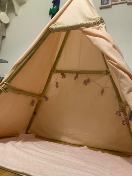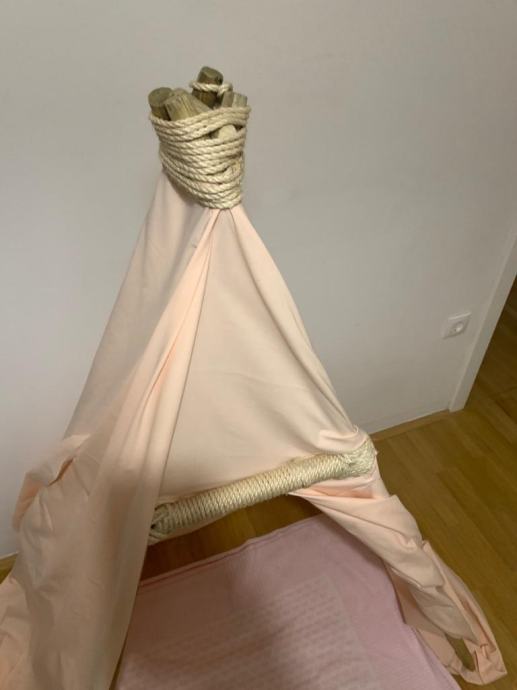 Prodajem DIY dječji šator za igru zbog manjka prostora. Dimenzije šatora su 100cm x 70cm x 130cm (visina).