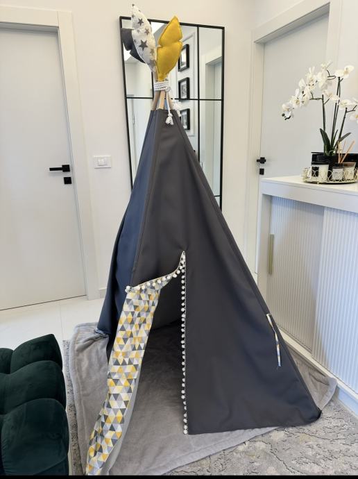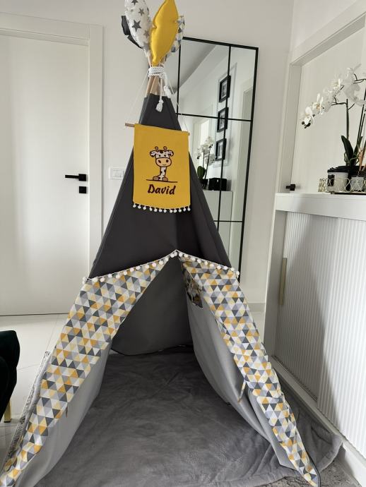 Šator je kao nov, nema tragova korištenja, zastavica s imenom se može skinuti. S njim dolazi i mekana podloga za igru. Jako prostran i prekvaliteta. Kupljen na stranici Tvornica poklona.