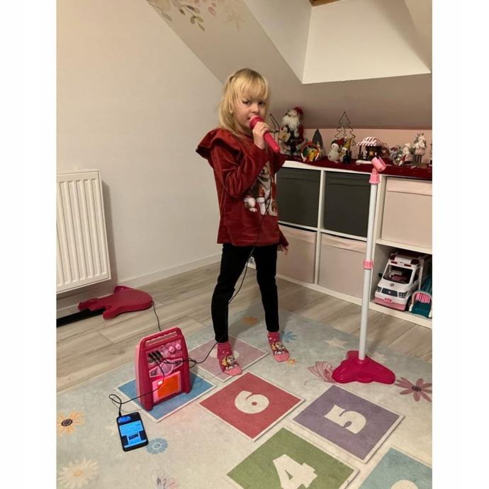Fantastična električna gitara za djecu, opremljena pojačalom i stalkom mikrofona, definitivno će poput svakog malog ljubitelja glazbe i nastupiti pred publikom. Cijeli set je u ružičastoj boji, pa ako vaše dijete također voli ovu boju - došli ste na pravo mjesto. S gitarom s pojačalom, vaše će se dijete na pozornici osjećati kao pravi umjetnik. Kao glazbena zvijezda na koncertu, vaše dijete s gitarom i mikrofonom stvorit će prekrasne melodije i pjevati pjesme. Ludi koncert popraćen je bljeskajućim svjetlima u gitari i pojačalu.
