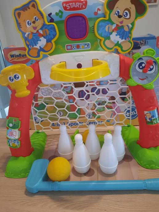Sportski centar 4 u 1. Mogućnost igranja nogometa, košarke, golfa i bowlinga. LED zaslon bilježi rezultat i prikazuje zabavne animacije. Aktivnosti potiču razvoj motoričkih sposobnosti i koordinaciju očiju i ruku.