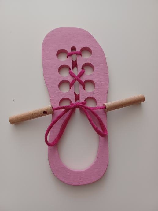 Didaktička drvena igračka za razvijanje motorike, učenje boja i vezanja vezica.