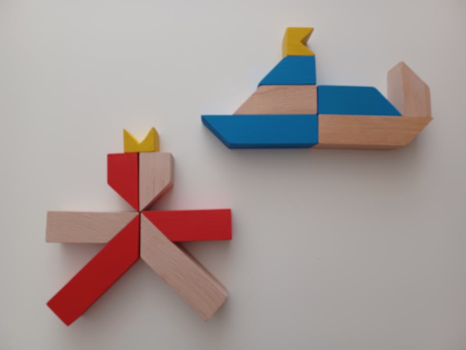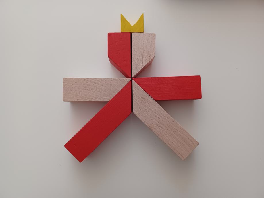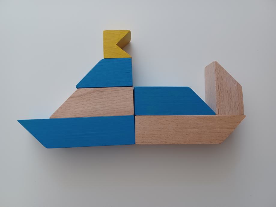 Didaktička drvena igračka za razvijanje motorike od 7 djelova koja daje mogućnosti slaganja više različitih oblika.