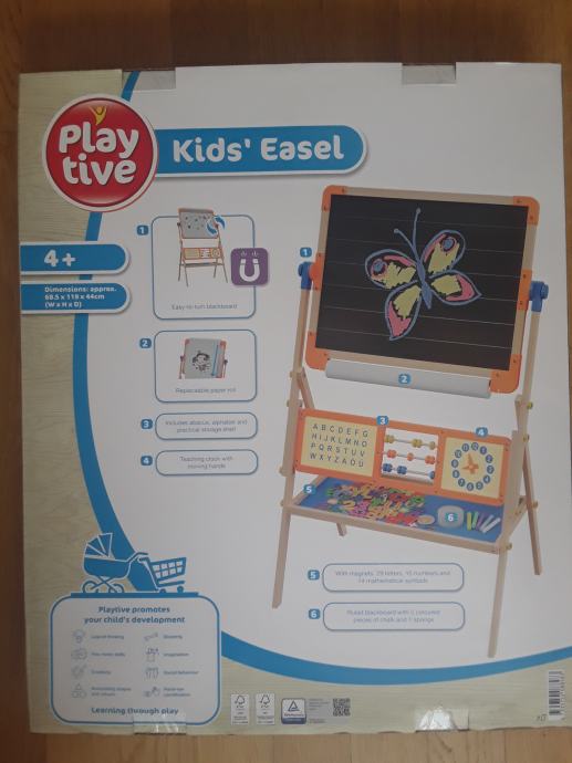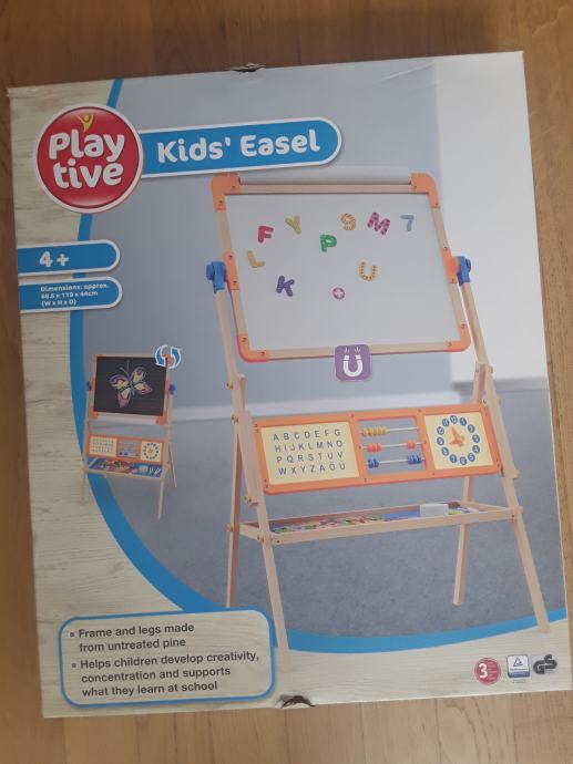 Play Tive dvostrana drvena ploča s jedne strane ima površinu za crtanje kredom, a s druge strane površinu za postavljanje magnetskih slova i crtanje flomasterima ili bojicama. Drvena ploča izvrstan je alat za kreativnu igru i prikladna je za djecu od 3 godine nadalje.
