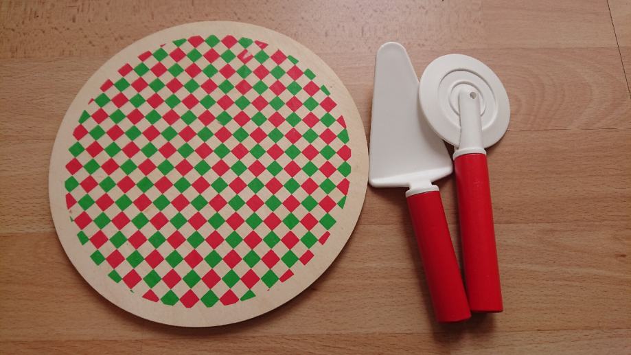 - djeljivi komadi pizze sa spojevima na čičak koje je moguće prekriti sastojcima za pizzu