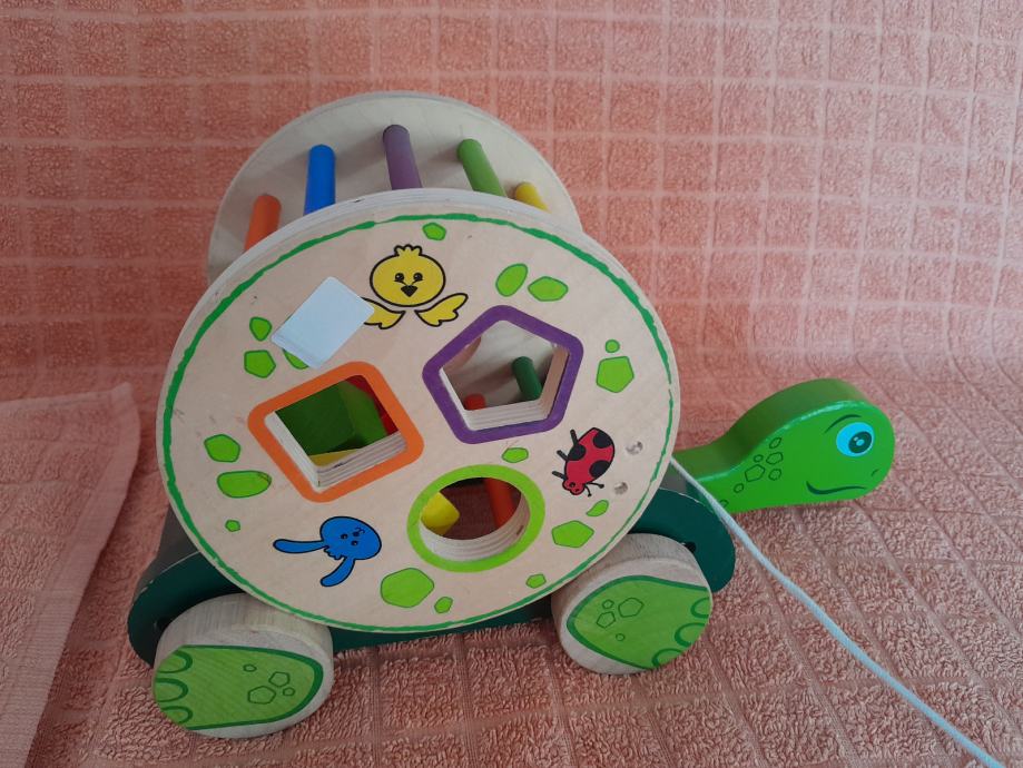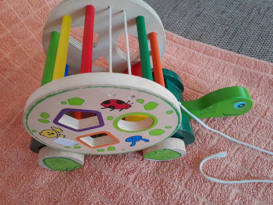 Puž koji ima špagu da se vozi i krug koji se okreće,u krugu su razni oblici.