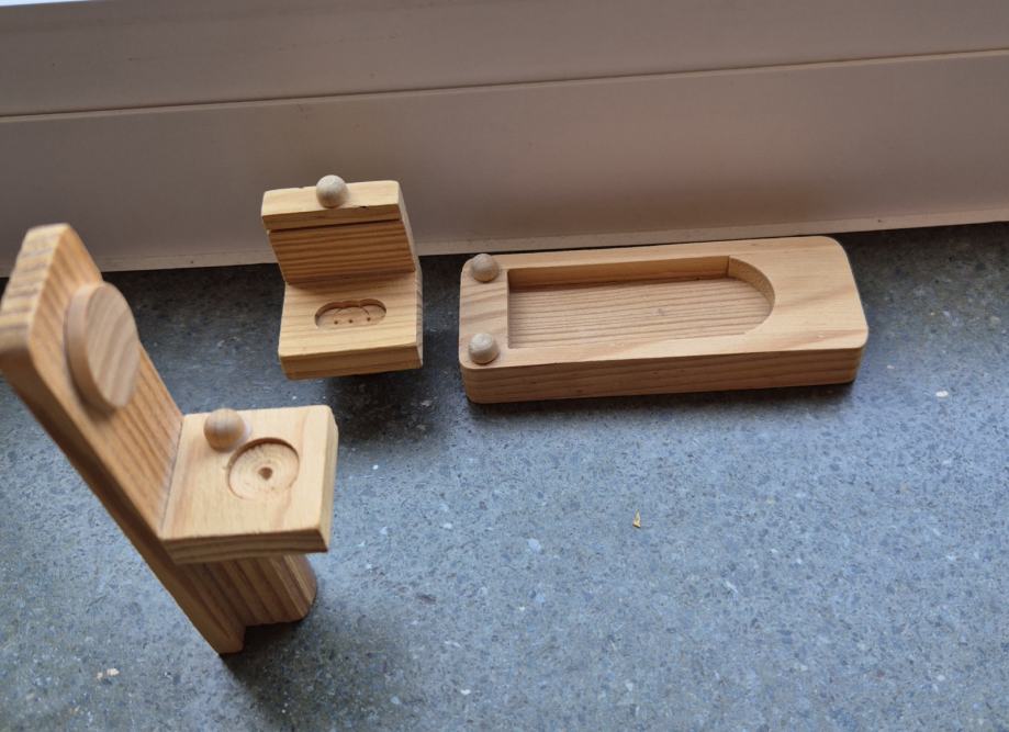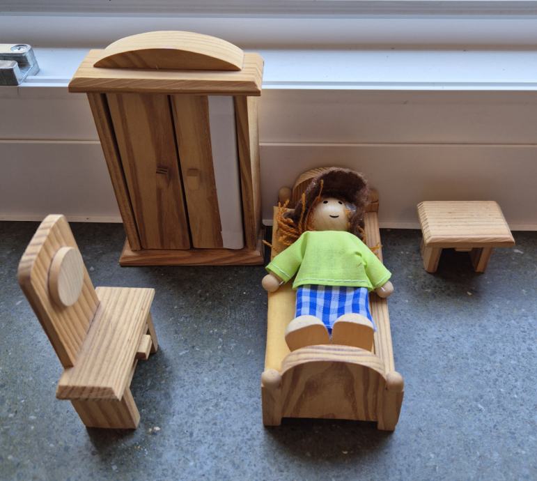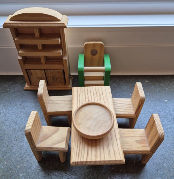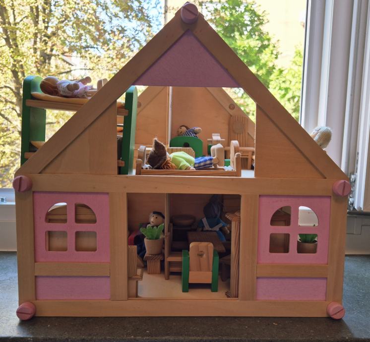 Drvena kućica za lutke, namještaj, lutke