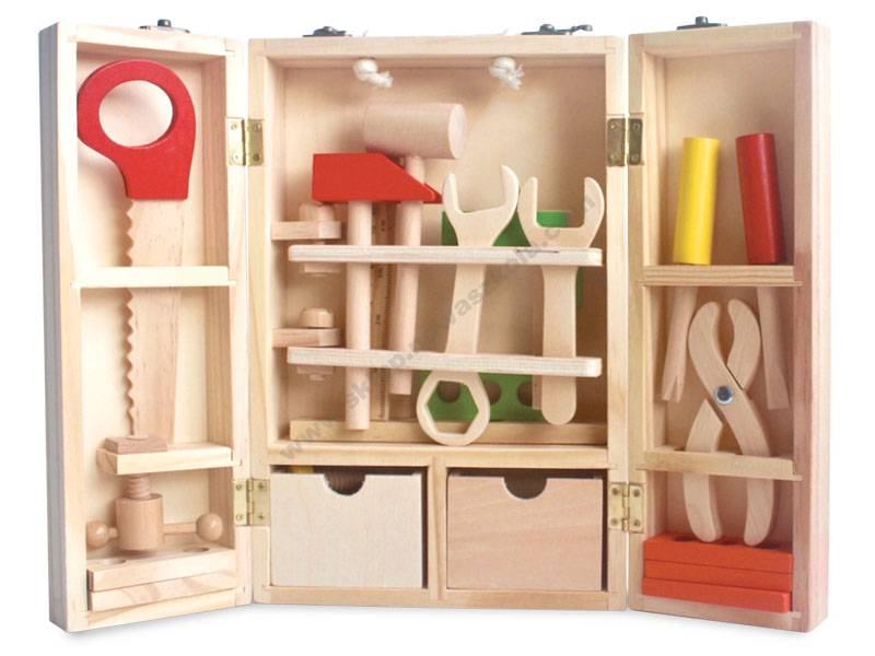 Sadržaj: 2 čekića, 2 ključa, ručna pila, kliješta, metar, steznik, 2 odvijača, 7 malih dasaka za klinove, mnogo vijaka i matica