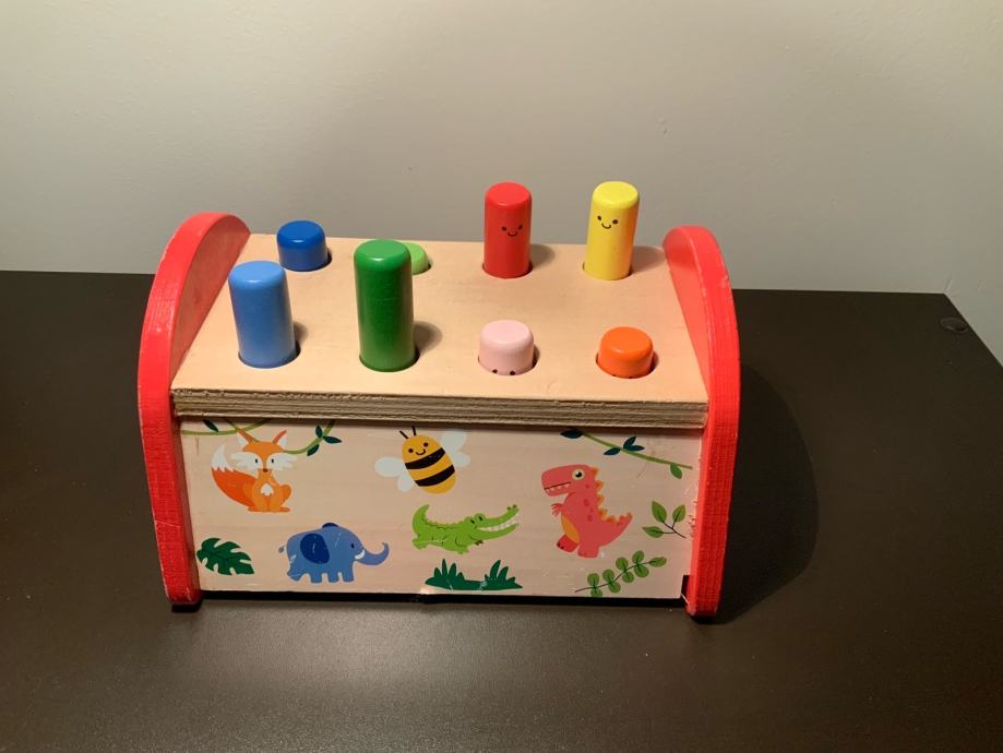 Kutija sa valjcima po principu jedan valjak unutra jedan van. Za učenje boja i poticanje fine motorike.
