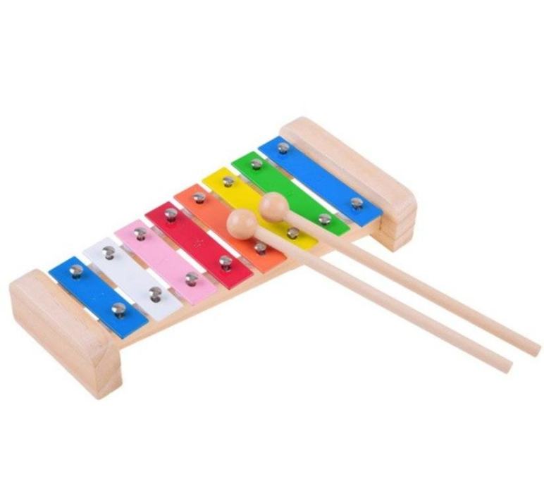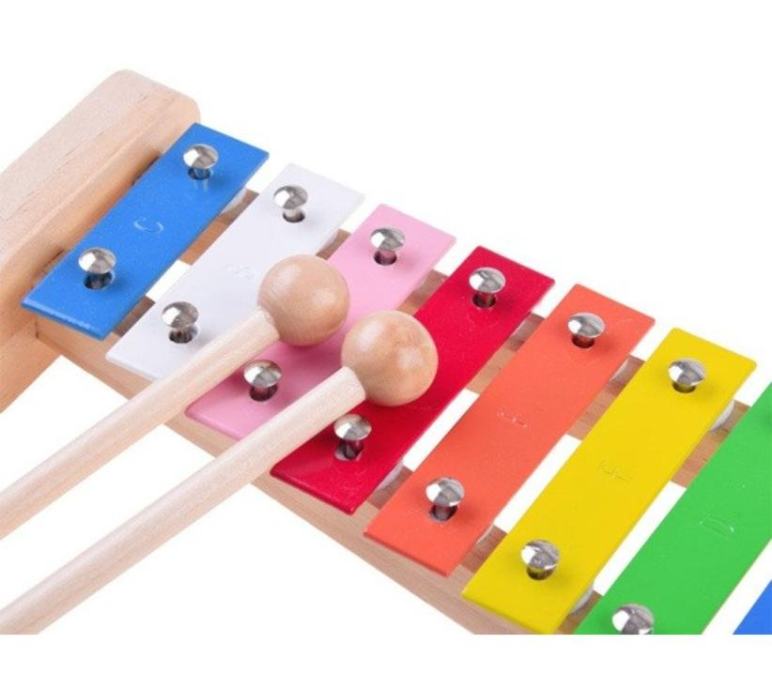 Šareni drveni set instrumenata za sviranje, zabavu i učenje glazbenih zvukova savršena je ideja za svakog glazbenika početnika.