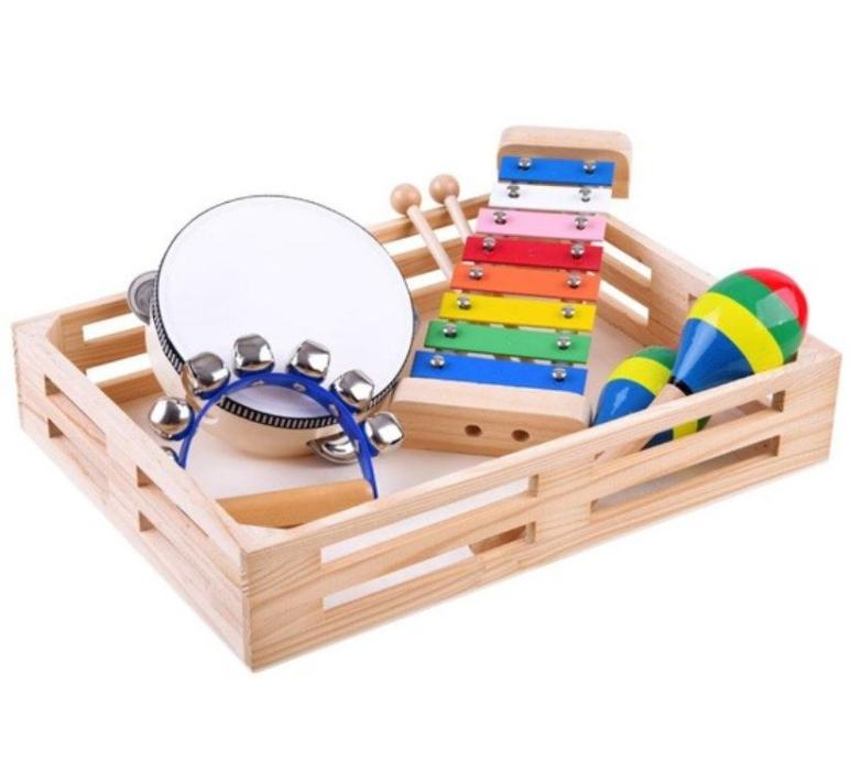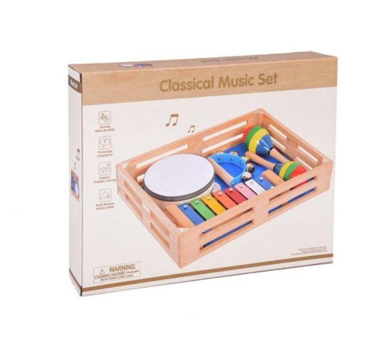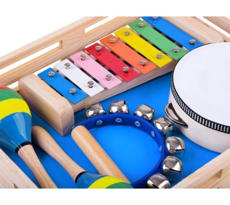 Ovaj glazbeni set privući će pažnju vašeg djeteta, fascinirati ga, a vi ćete imati trenutak za sebe. Instrumenti su izrađeni od vrlo estetskog, visokokvalitetnog drva.