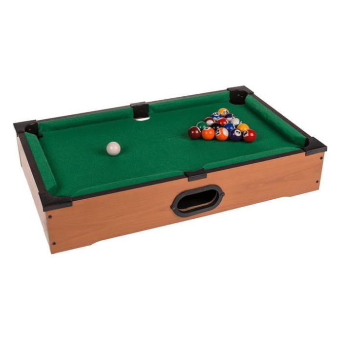 S ovim biljarom stola možete vježbati kod kuće, s prijateljima ili u kantini na radnom mjestu kako biste svoje biljarske vještine podigli na višu razinu. Prikladna veličina olakšava pohranjivanje i ne morate rezervirati veliki prostor nego s pravim biljarskim stolom. Veličina tablice je 51 x 31 x 9,5 cm i komplet je s: