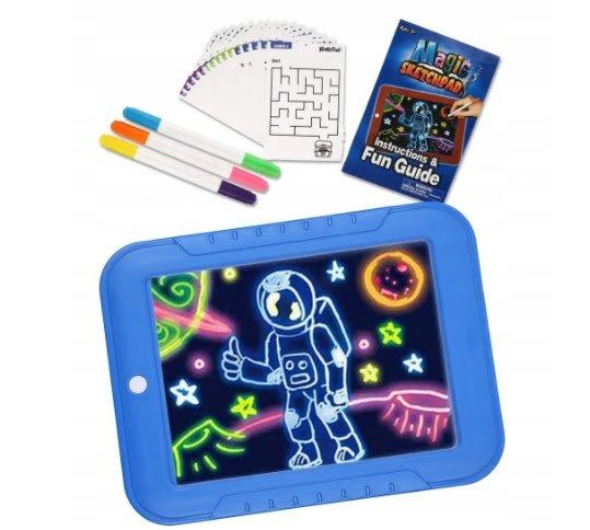 Eco LED grafička ploča za crtanje + jastučići od neonskog filca Magic Pad odličan je dodatak za sve koji vole crtati i stvarati. Tablet je izrađen od LED rasvjete što olakšava crtanje u tamnim prostorima. Neonske olovke, međutim, omogućavaju stvaranje šarenih i živahnih crteža.