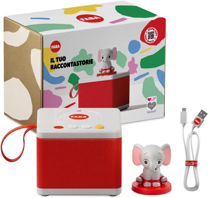 SADRŽAJ: FABA pripovjedači, zvučni lik “Ele the Elephant” s 15 pjesama unutra, USB kabel za spajanje zvučnika na računalo i ponovno punjenje. Svaki lik će vas iznenaditi novim dječjim pjesmicama i pričama, uspavankama, dječjim pjesmicama, pričama za laku noć, klasičnim bajkama, kratkim bajkama.