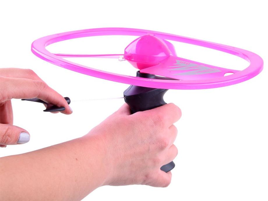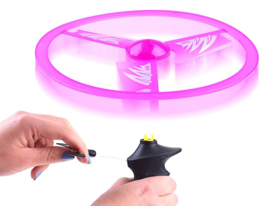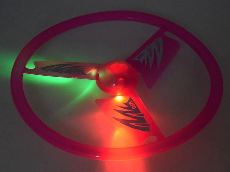 Nevjerojatan leteći disk/frizbi/leteći NLO za igru u parku ili u vrtu na otvorenom. Igračka na potezanje sa svjetlosnim efektima omogućit će vam kretanje i zabavu. Leteći tanjur najbolji je način kretanja na otvorenom. Igračka pruža nevjerojatne svjetlosne efekte tijekom večernje zabave zahvaljujući baterijama uključenim u set, koje osvjetljavaju LED diode montirane u ploču.