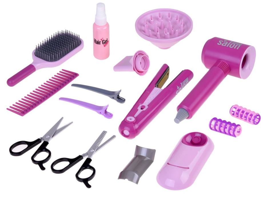 Set dodataka od više elemenata ima sve što vam je potrebno u profesionalnom frizerskom salonu. Dobro će poslužiti svakom malom frizerskom manijaku i djevojci koja sanja o tome da u budućnosti postane frizerka. Zahvaljujući takvom setu, lako se možete brinuti o stanju kose vaše majke ili bake, kao i stvarati otmjene frizure.