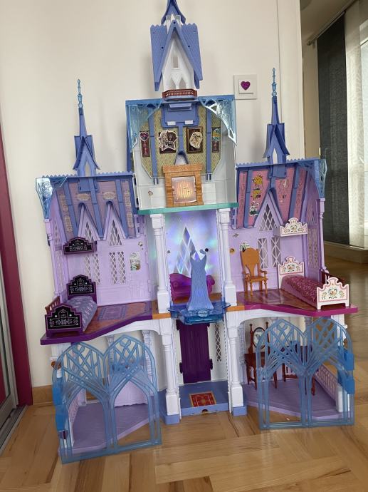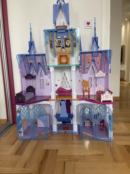 Dvorac je visok 152 cm i širok 122 cm. Dvorac je inspiriran domom princeze Else i Anne iz bajke Ledeno kraljevstvo 2. Dvorac ima prekrasna 'drvena' vrata, kad ih otvorite, naći ćete 7 prekrasnih soba i kula s nizom dodataka poput stola za čaj, prijestolja, toaletnog stola ili sofe. Uz pomoć kristalnog balkona, lutke se mogu premjestiti između podova.