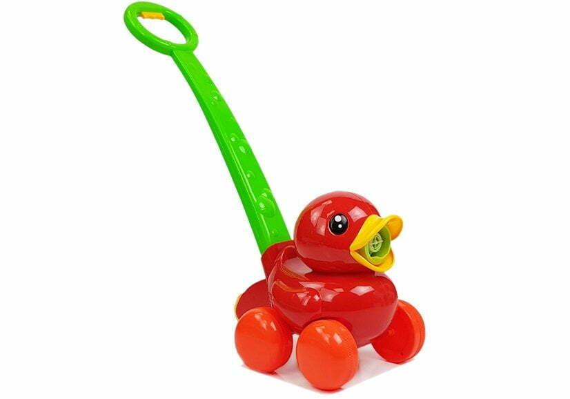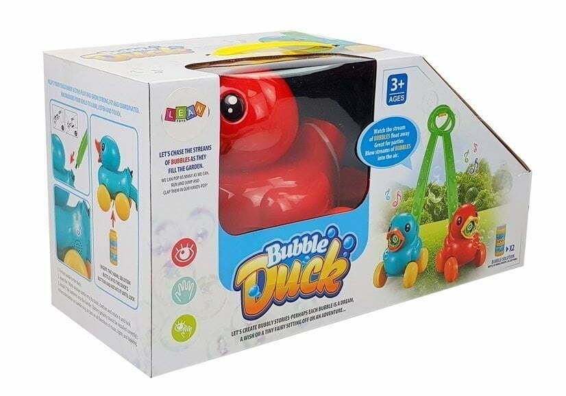 Izrada mjehurića sapuna pomoću predstavljenog stroja vrlo je jednostavna aktivnost. Nakon pritiska na gumb na ručici, vaše će dijete čuti glazbu i zvukove mjehurića. Zelena ručka dugačka je 40 cm, zahvaljujući kojoj će dijete moći slobodno voditi patku. Obogaćit će svaku šetnju i igrati se u vrtu. To će pomoći vašem djetetu u dobrom dodiru i sluhu.