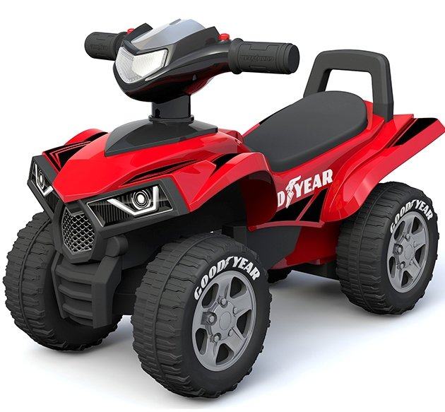 Dijete samostalno vozi ride-on, sjedeći za volanom i gurajući se nogama. Dijete može voziti ride-on naprijed i nazad i skretati desno i lijevo.