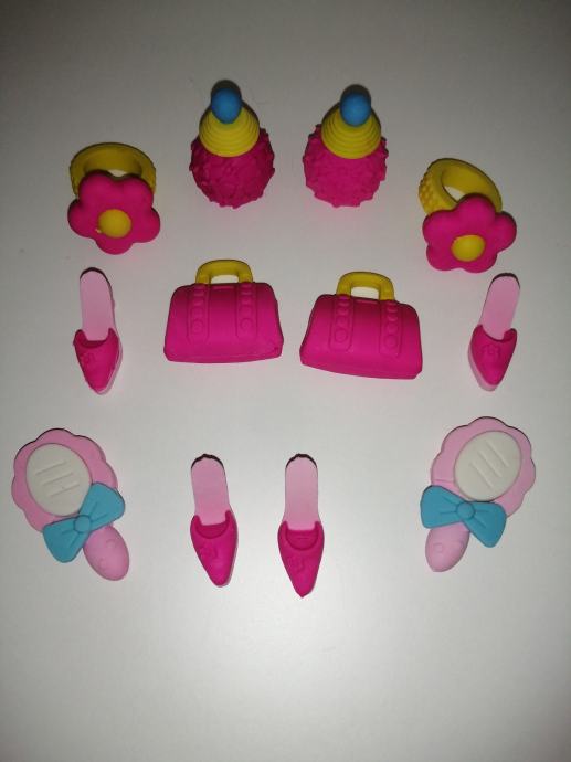 12 komada ukrasa izrađene kao gumica za brisanje, mi smo koristili kao ukras za rođendansku tortu na temu šminkerica.