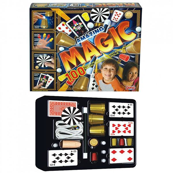 Set mađioničarskog pribora i rekvizita. Za učenje i izvedbu 100 raznih trikova. Priložene upute za izvedbu trikova.