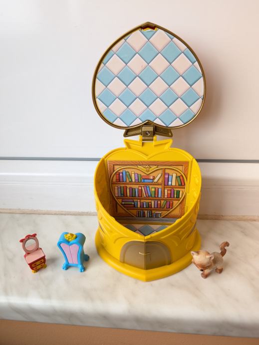 Kućica ima oblik srca, rasklapa se, uz nju dolazi namještaj i figura. Može biti za razne ljubimce tj figurice.