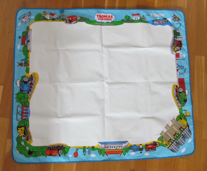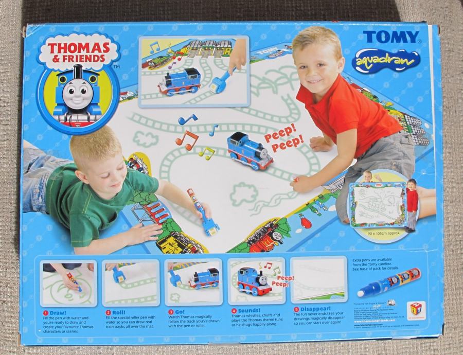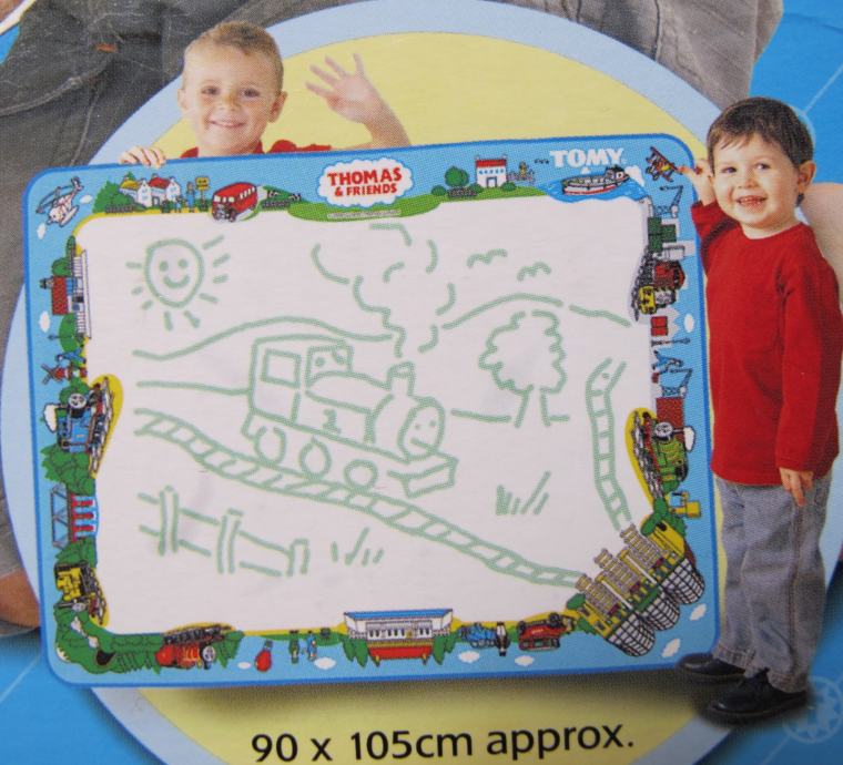 Veličina kutije 36x28x7cm, veličina podloge za crtanje tračnica i vožnju vlakića 90x105cm.