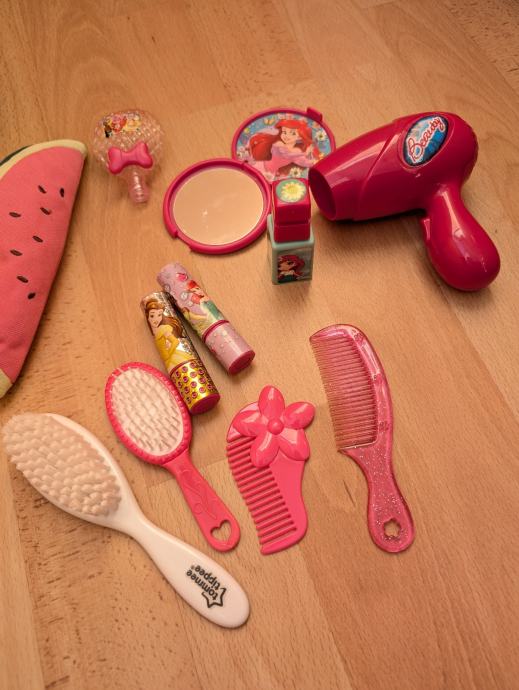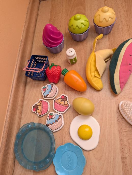 Igračke za djevojčice - za kuhanje, hrana, voće, povrće, jaja, kolačići i za uređivanje, lak za nokte, ruž za usne, češljići, ogledalo, parfem, fen i td., razne sitnice za sate i sate igranja.