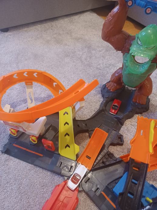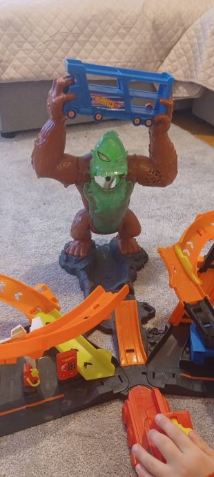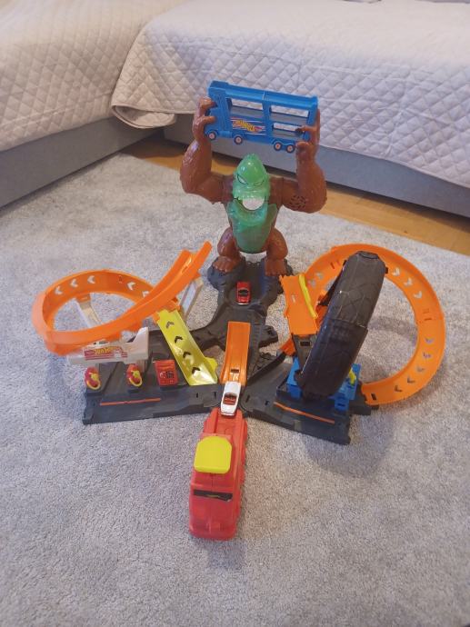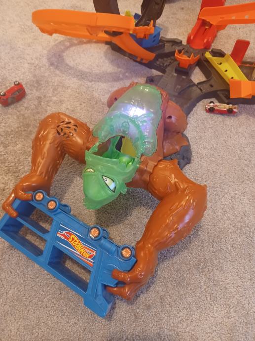 Prodajem Hot weels stazu majmun,tri smjera staze pucanja, majmun se glasa svaki puta kada mu autić uleti u usta , ako neuspijes isto se glasa ali drugačije i svijetli. Ispravna.