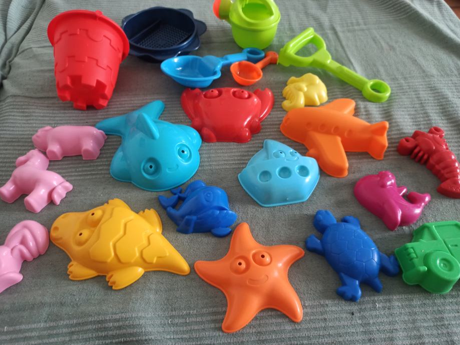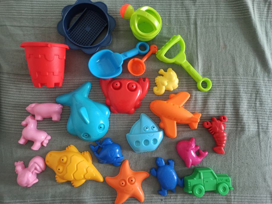 Prodajem igračke za pijesak: 15 kalupa, 2 lopatice, 1 grablje, 1 sito. Sve skupa za 4 eura.
