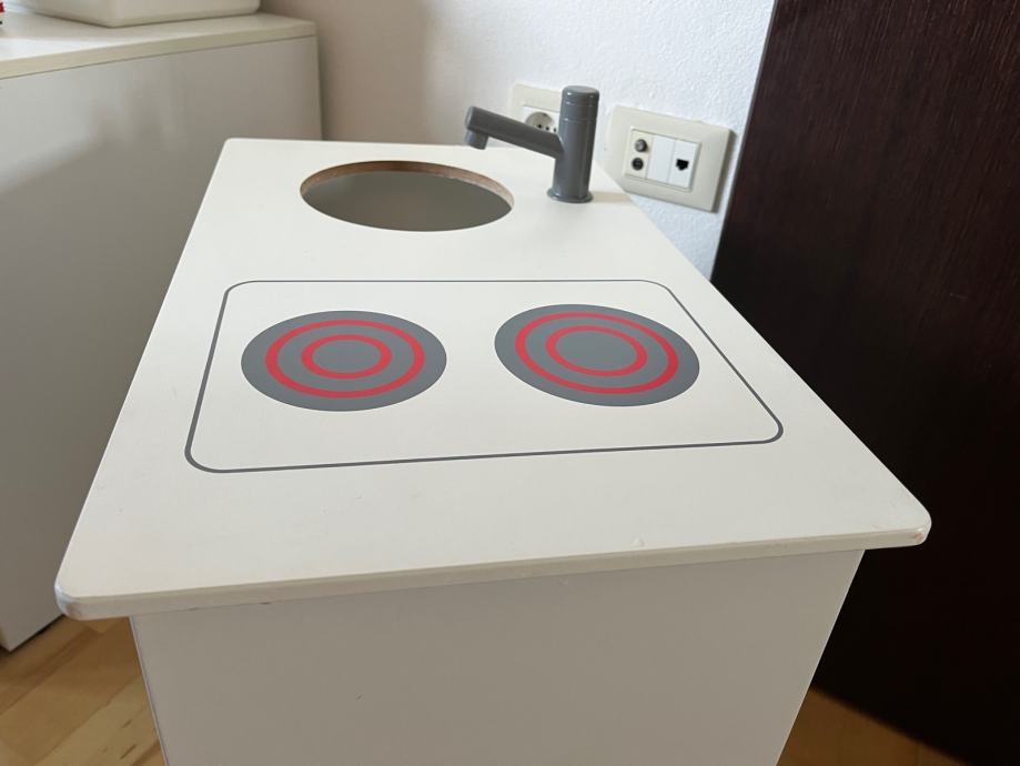 Dječja kuhinja za igru IKEA. Održavana i u dobrom stanju. Nedostaje malo korto za pranje suða koje je lako zamjenjivo s bilo kojom posudom sličnih dimnzija.