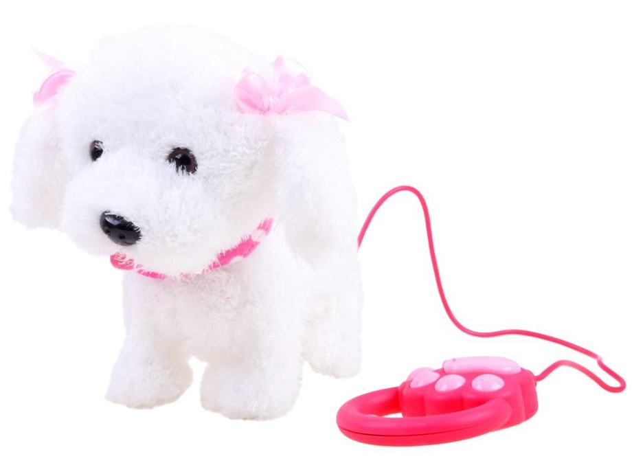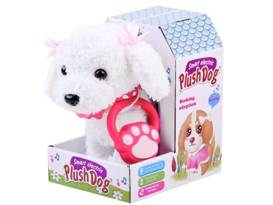 Interaktivni pas s povodcem može biti zamjena za dječji san o pravom četveronožnom prijatelju. Vjerojatno nema djeteta koje ne bi sanjalo o vlastitom psu. Plišanog interaktivnog psa napajaju 3 baterije s 1,5V AA prstima, zahvaljujući kojima može lajati, hodati, mahati repom, cviljeti. Pas reagira na dodir, miluje dijete zvukovima lajanja, mahanjem repom, radošću.