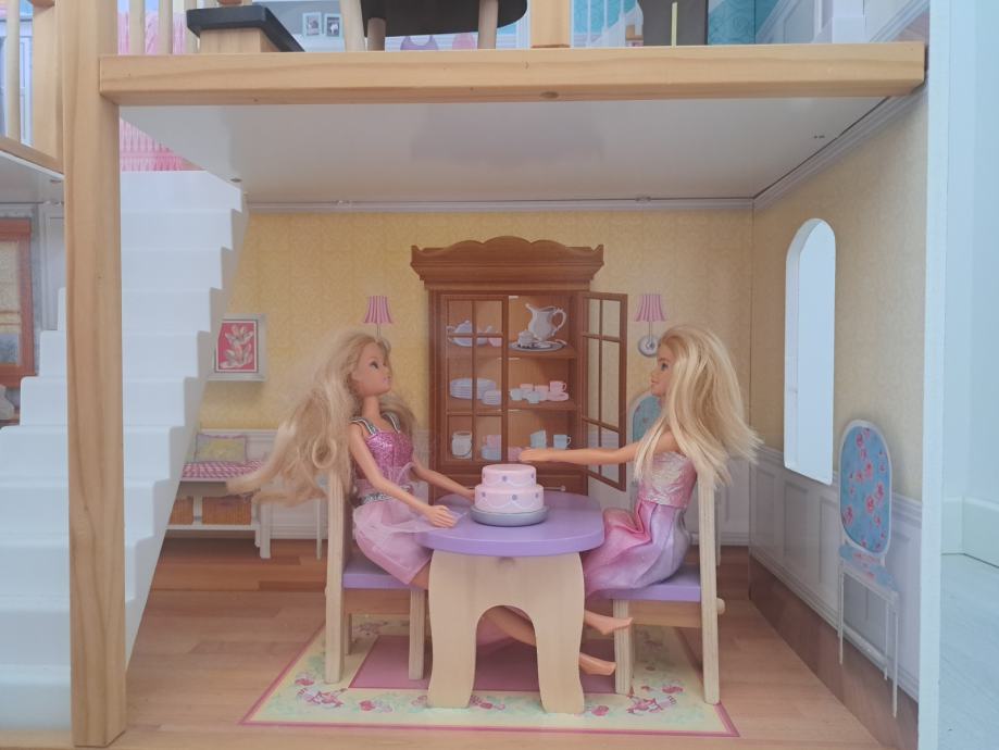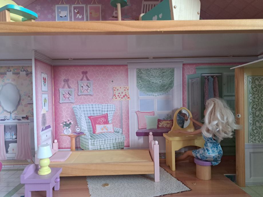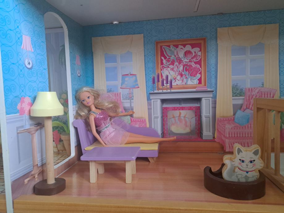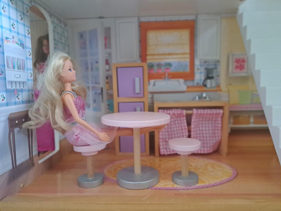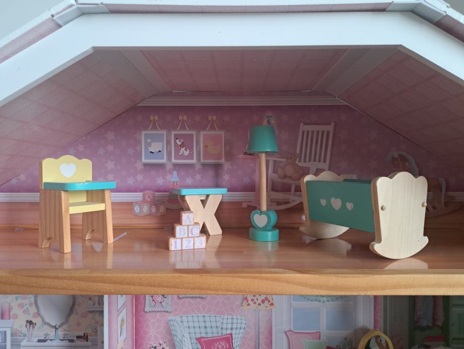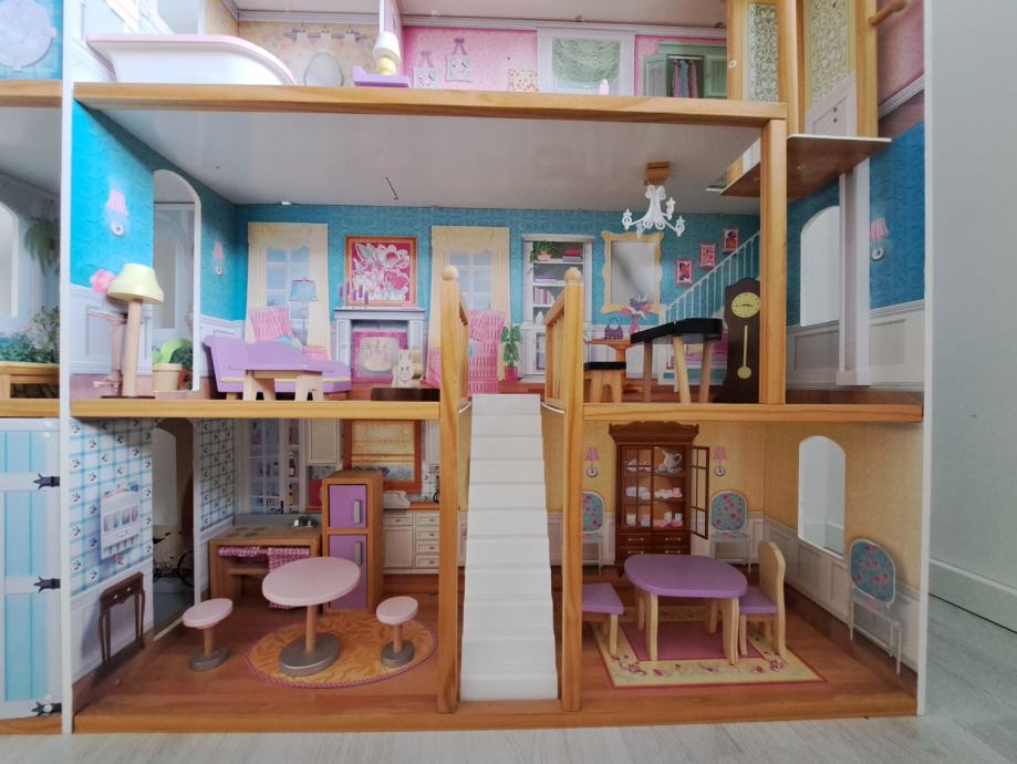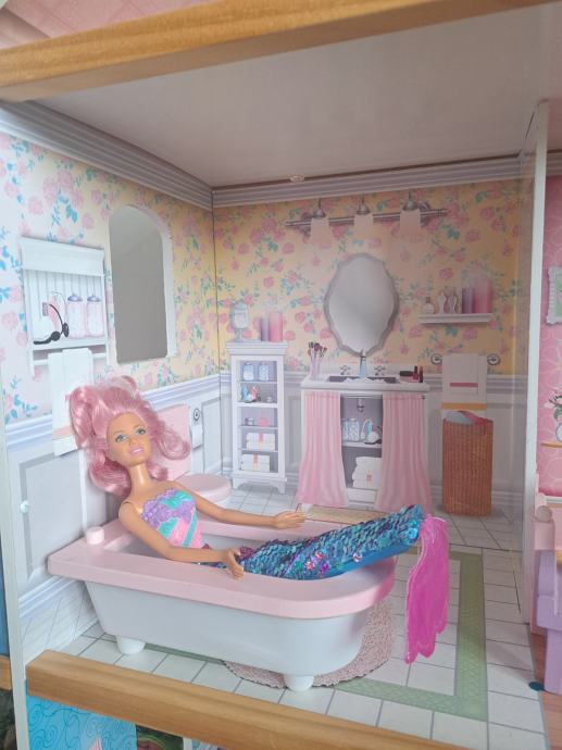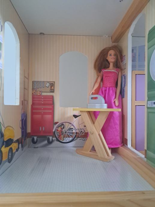 Ima i pokretne znacajke kao sto su klizni lift i vrata. Pogodna za lutke visine do 30 cm.