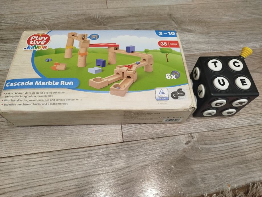 Prodajem drvenu kuglanu (Playtive Junior) s kuglicama i dodatno edukativnu interaktivnu kocku sa slovima.