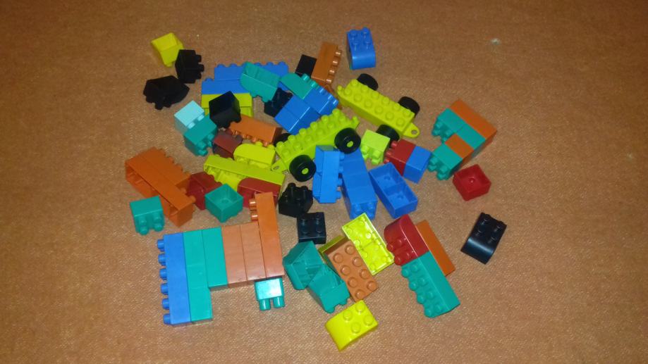Kockice za slaganje (nisu Lego) - 65 komada + 2 autića (samo komplet)