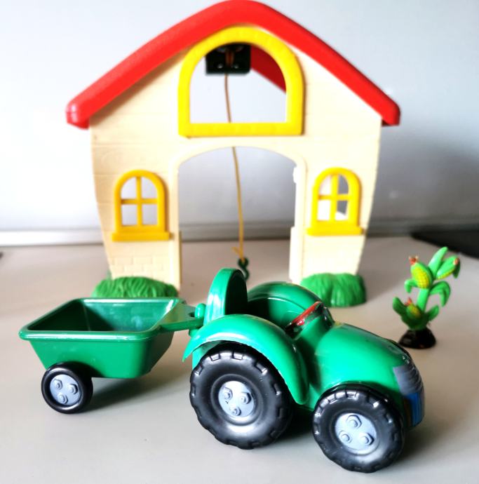 Komplet mala farma, kuća, traktor i biljka, kao novo