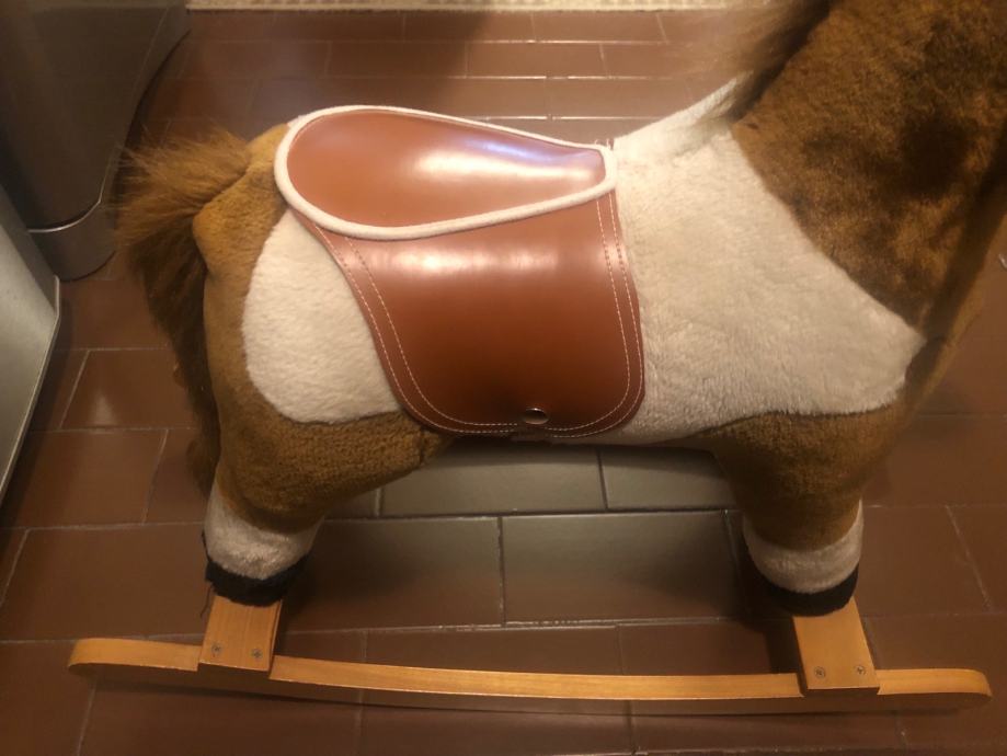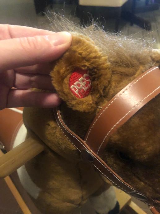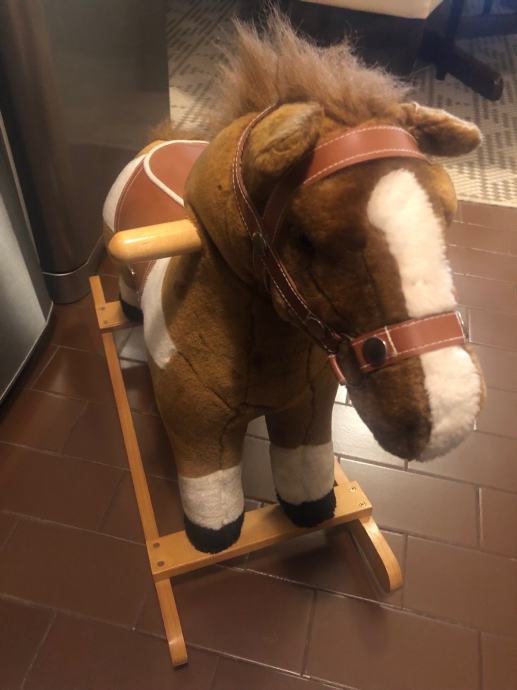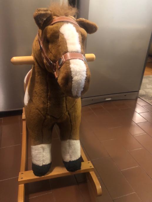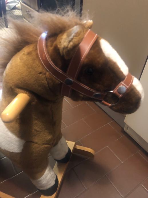 Konjić za ljuljanje, kad se pritisne uho ispušta zvuk trka u kasu i rže.