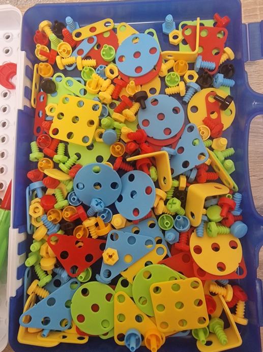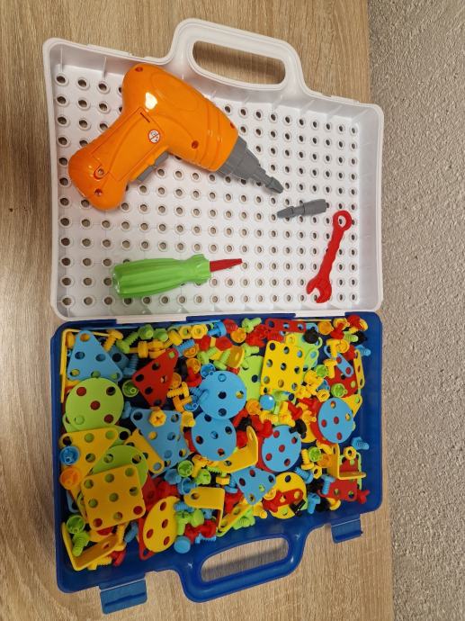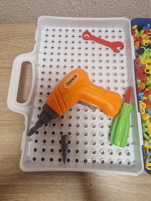 Dječji kreativni set odvijač, bušilica na baterije, vijci, kockice.