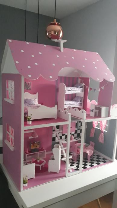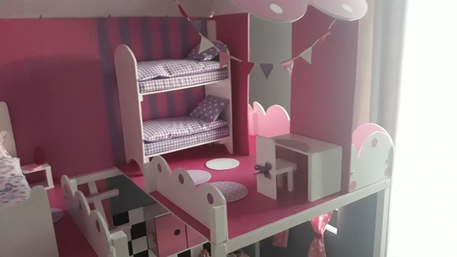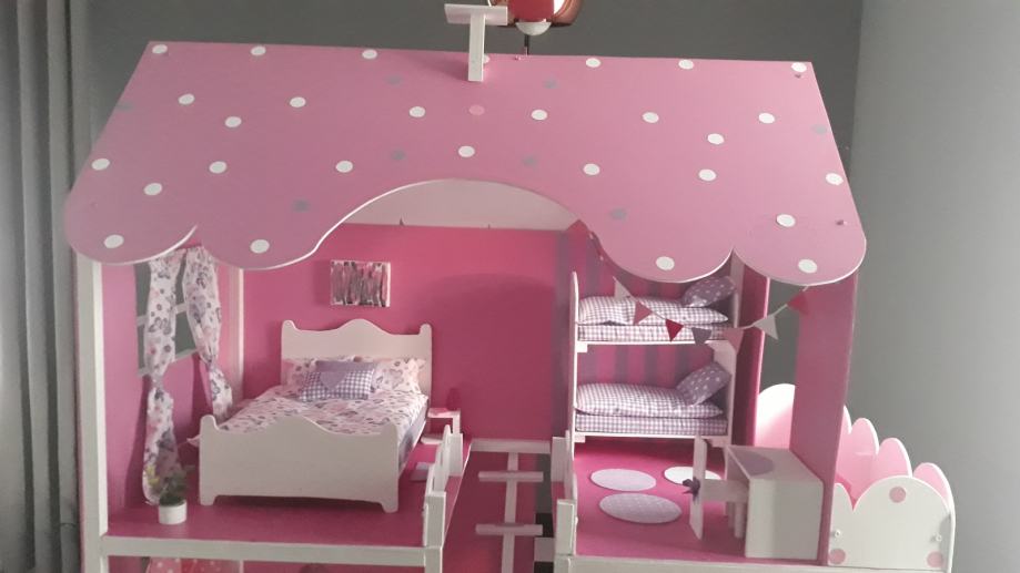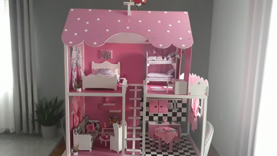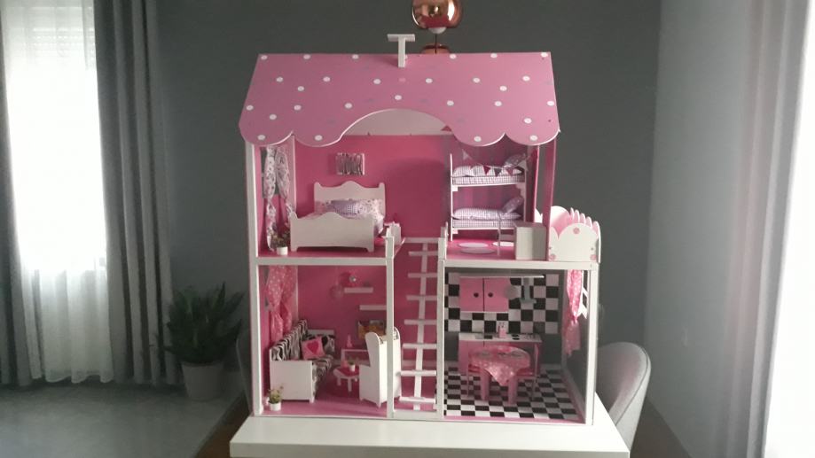 Prodajem ručno izrađene kućice za barbike s kompletnim namještajem koji vidite na slikama.Kućice kao i namještaj su napravljeni od šperploće 4mm i 8 mm,a bojani su bojom na bazi vode koje ne mogu naškoditi zdravlju.Kućica kao i namještaj su prilagođeni za barbike,a namještaj kao i kućicu prodajemo još i pojedinačno(kućicu bez namještaja ili svaki namještaj zasebno)! Dimenzije kućice su sljedeće visina 1m,širina 85cm i dubina 40cm.SVE JE RUČNI RAD I STVARNO JE KVALITETNO NAPRAVLJENO!!!!!