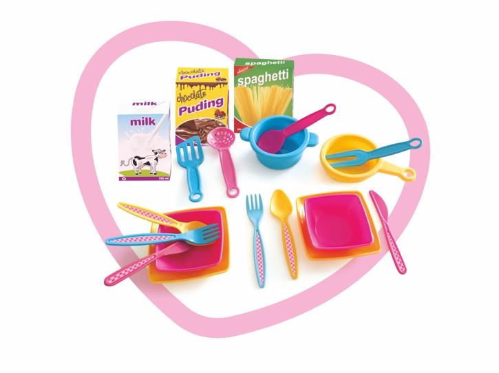 Sadrži 19 plastičnih dodataka u obliku pribora.