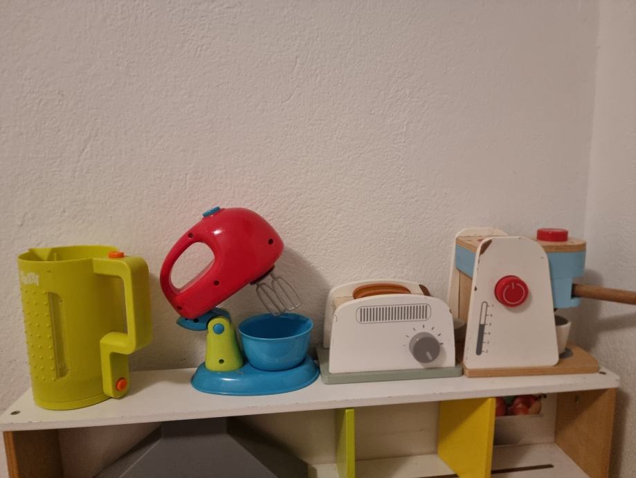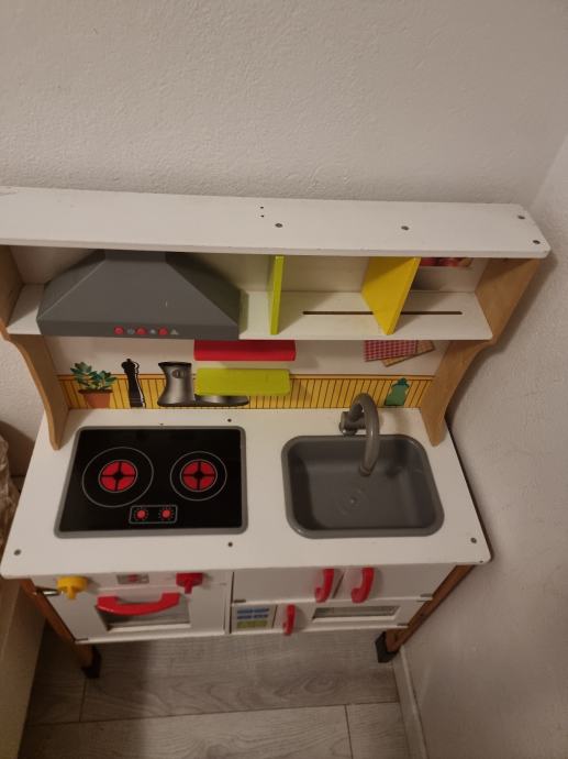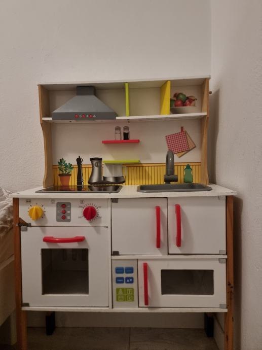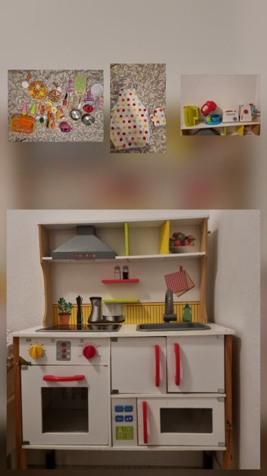 Prodajem kuhinjicu za djecu sa svim dodacima sa slika za 35 eura.Samo osobno preuzimanje posto se kuhinjica ne moze rastaviti.Kuhinjica ima ostecenja kao sto se vidi i na slikama i jedna vrata su klimavija pa je zbog toga ovakva cijena i dodani su svi uređaji/dodaci besplatno.